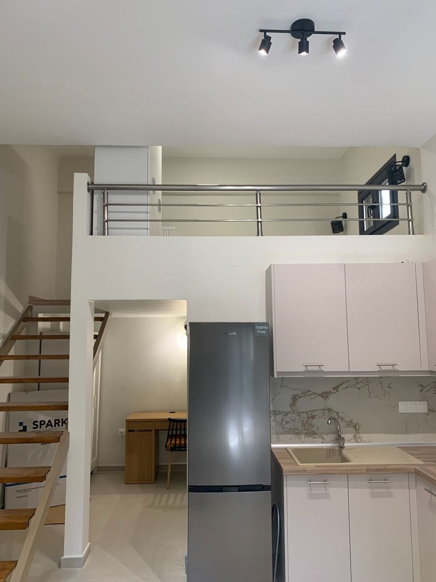 Ο ισόγειος χώρος αποτελείται από 1 σαλοκουζίνα, 1 χώρο γραφείου και 1 μπάνιο. Στο πατάρι συναντάμε τό υπνοδωμάτιο.  Η θέρμανσή του είναι  ατομική με Φυσικό Αέριο και διαθέτει κλιματισμό για ψύξη-θέρμανση. Το ακίνητό μας έχει ένα μικρό μπαλκονάκι μπροστά, πόρτα Ασφαλείας και είναι ιδανικό τόσο για ιδιοκατοίκηση κυρίως για Φοιτητές, αλλά και τόσο για επένδυση καθώς μπορεί να εξασφαλιστεί ένα καλό ενοίκιο δεδομένης τής πριοχής.