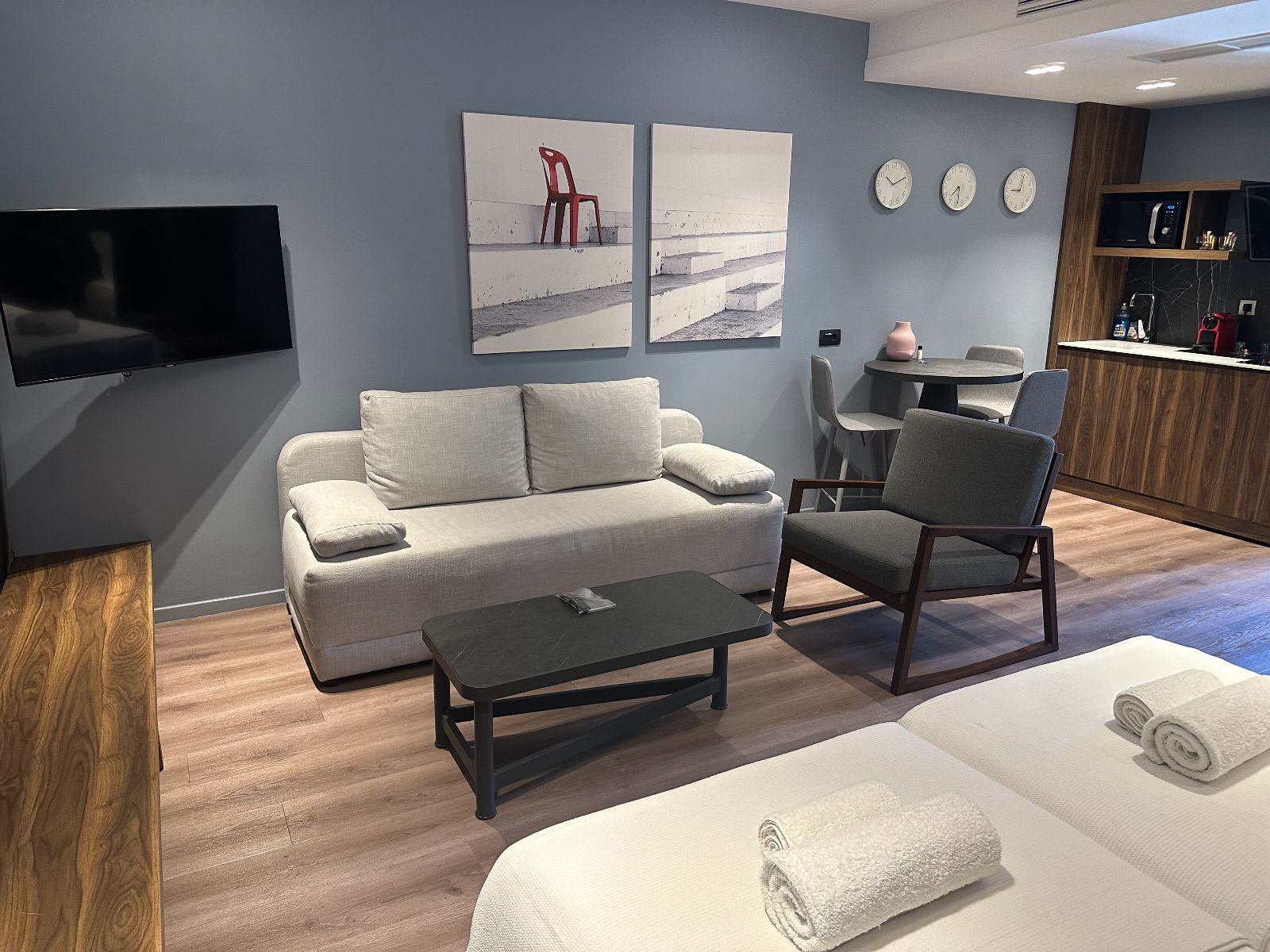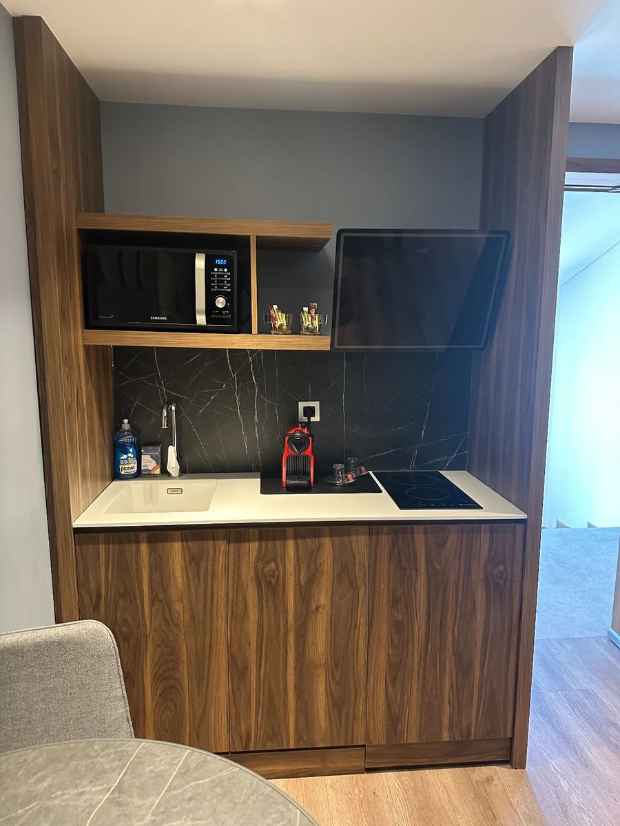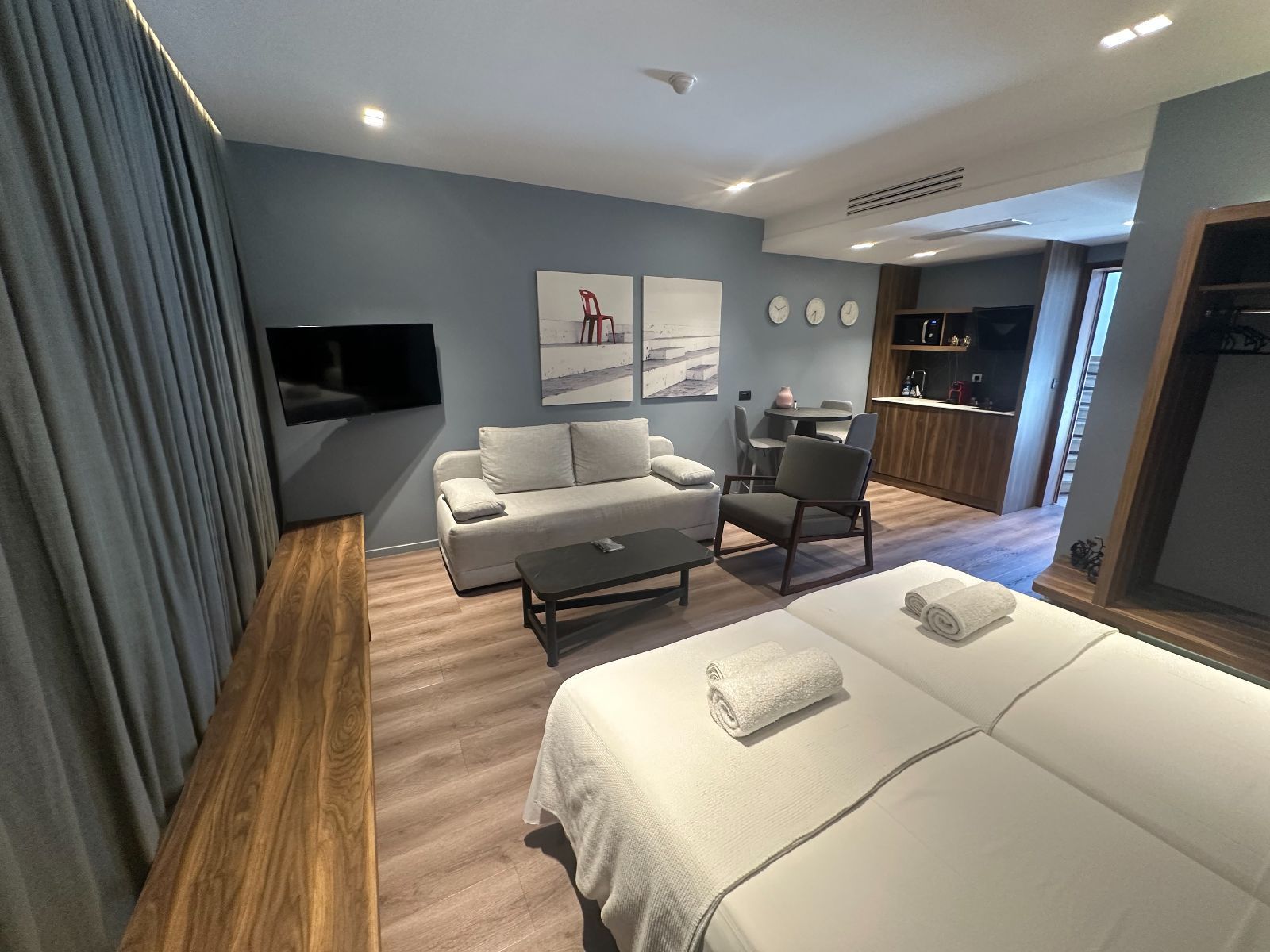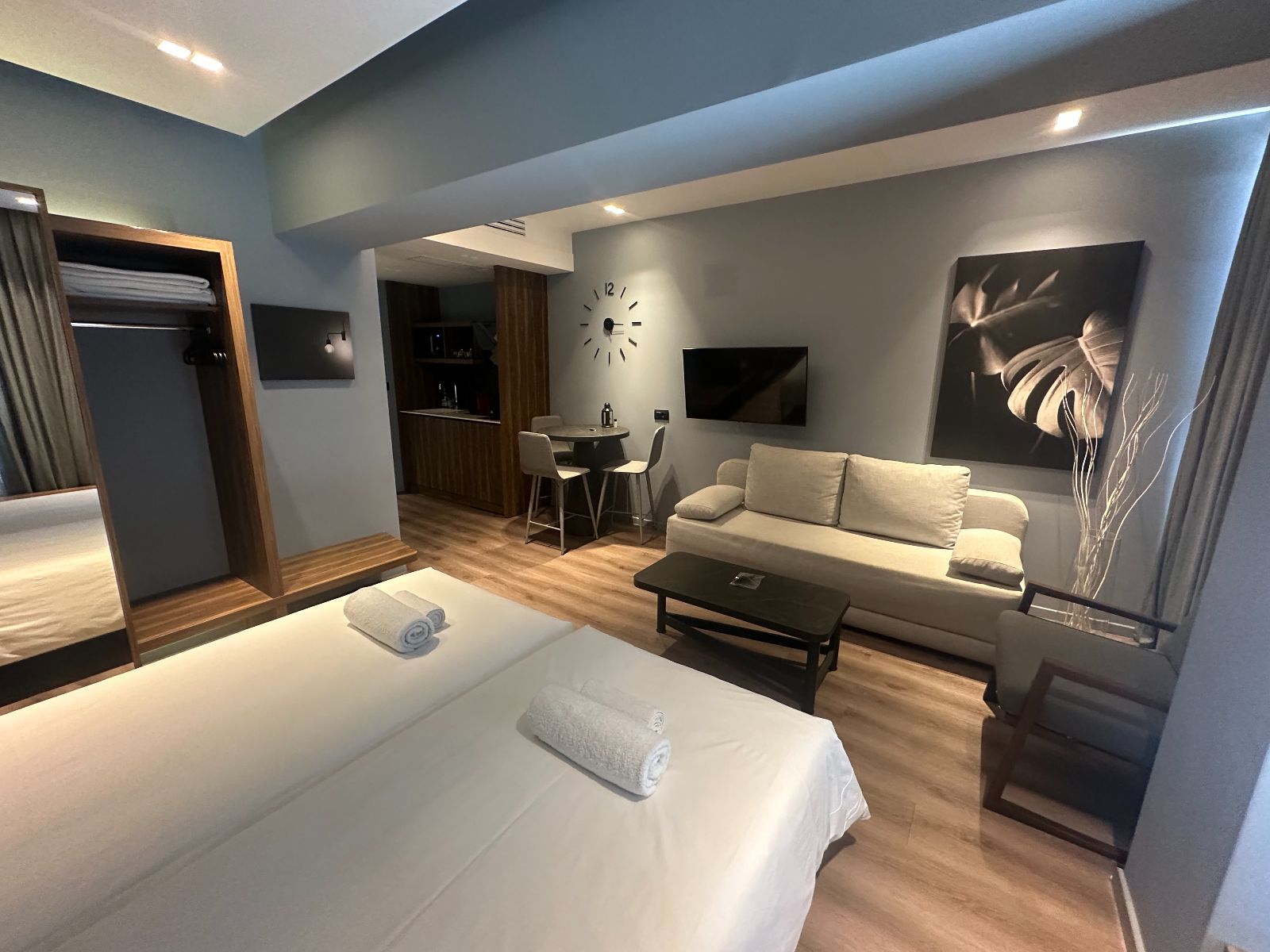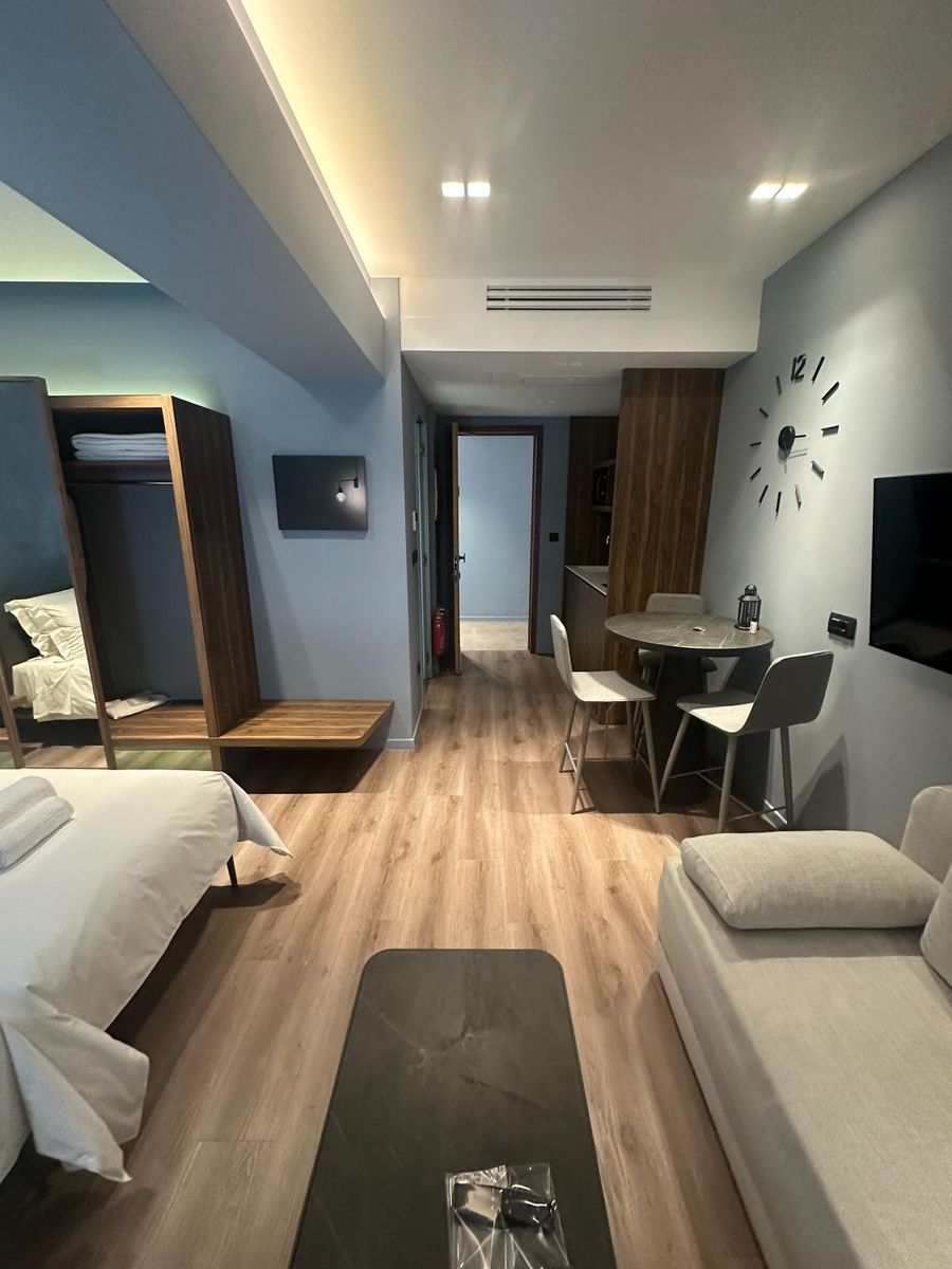 ΛΑΔΑΔΙΚΑ πωλείται συγκρότημα διαμερισμάτων σε πρώτο όροφο οικοδομής, πλήρως ανακαινισμένα και εξοπλισμένα. Το συνολικό εμβαδόν τού ορόφου είναι περί τα 150 τετραγωνικά μέτρα και αποτελείται, από 4 δωμάτια με 33 τετραγωνικά τό καθένα και από μια μικρή αποθηκούλα όπου διατηρούνται τά είδη καθαριότητας. Το κάθε δωμάτιο διαθέτει τό δικό του μπάνιο και τη δική του κουζίνα. Η θέρμανση διεκπεραιώνεται με κλιματισμό για ψύξη/θέρμανση και το δάπεδο είναι από laminate. Πρόκειται για μια εξαιρετική επαγγελματική και επενδυτική ευκαιρία όπου ο αγοραστής, ουσιαστικά, παραλαμβάνει μια έτοιμη και κερδοφόρα επιχείρηση σε μια από τις πιο τουριστικές περιοχές τού κέντρου τής πόλης.