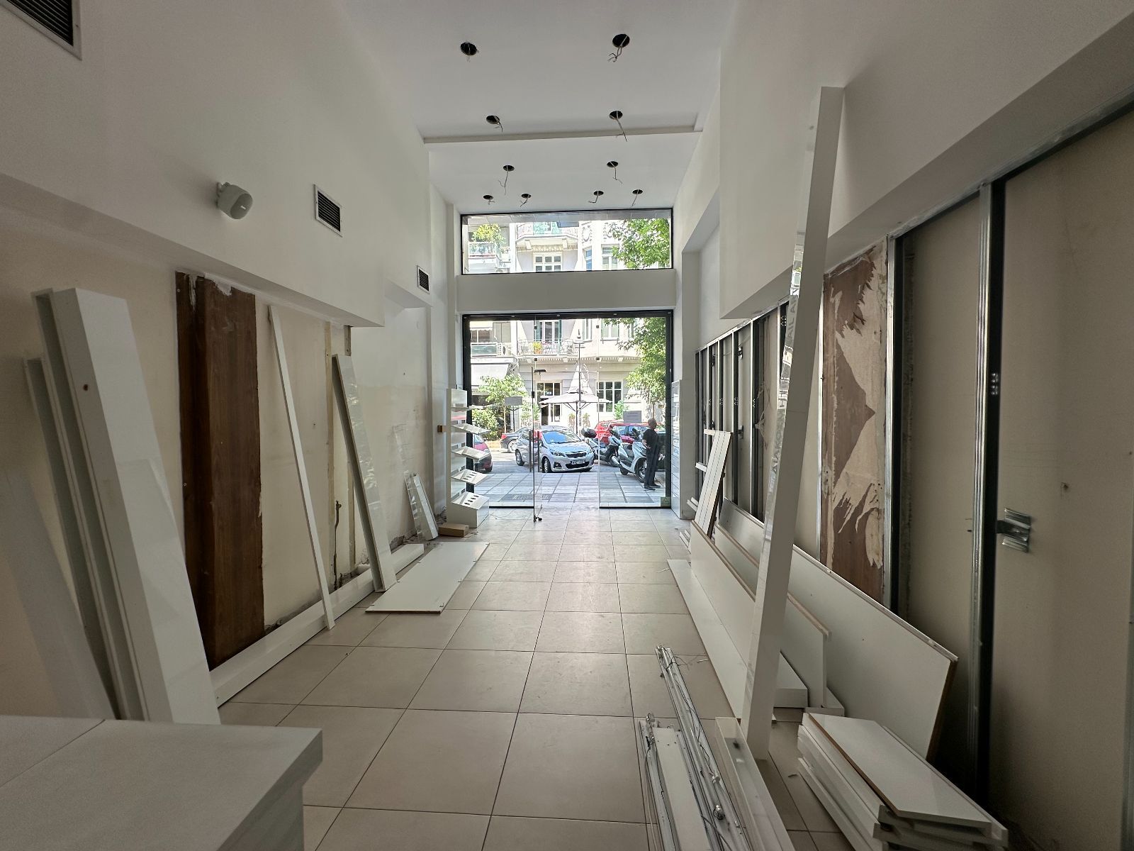 ΠΑΛΑΙΩΝ ΠΑΤΡΩΝ ενοικιάζεται ισόγειο κατάστημα μεγάλης προβολής και μεγάλης πρόσοψης (περί τα 4 μέτρα) σ' ένα από τα καλύτερα σημεία τού κέντρου. Τα συνολικά του τετραγωνικά είναι περί τα 274 και αποτελείται από: