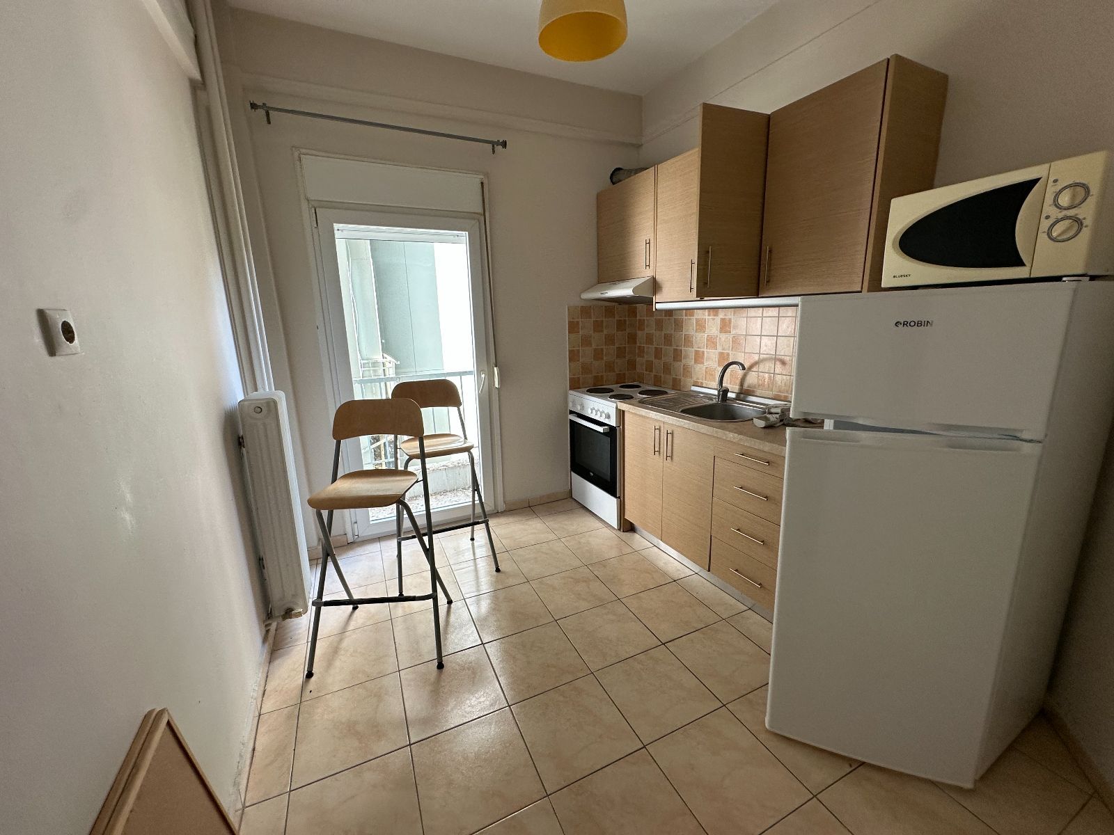 Το διαμέρισμα διαθέτει δύο υπνοδωμάτια, ευρύχωρο σαλόνι, ξεχωριστή κουζίνα και μπάνιο. Είναι πλήρως επιπλωμένο και εξοπλισμένο με όλες τις απαραίτητες ηλεκτρικές συσκευές, έτοιμο για άμεση εγκατάσταση.