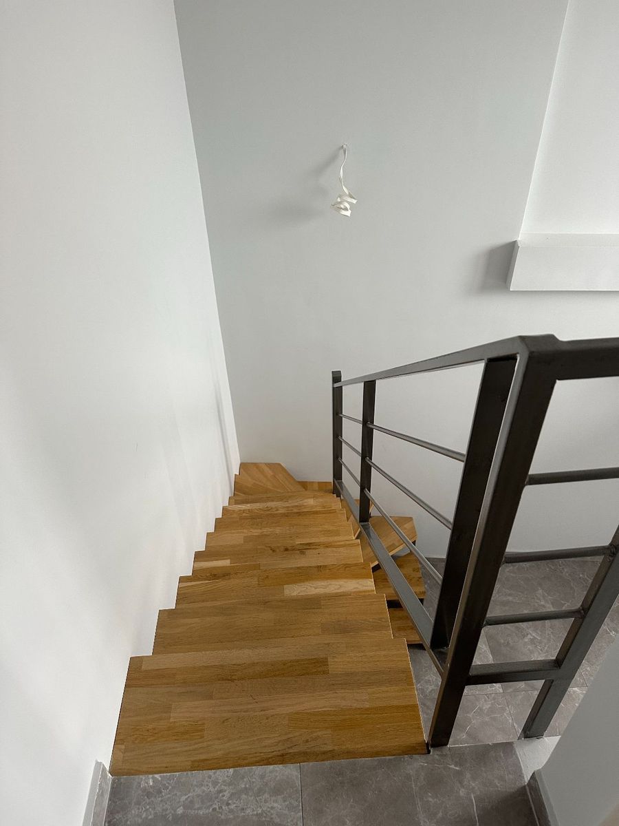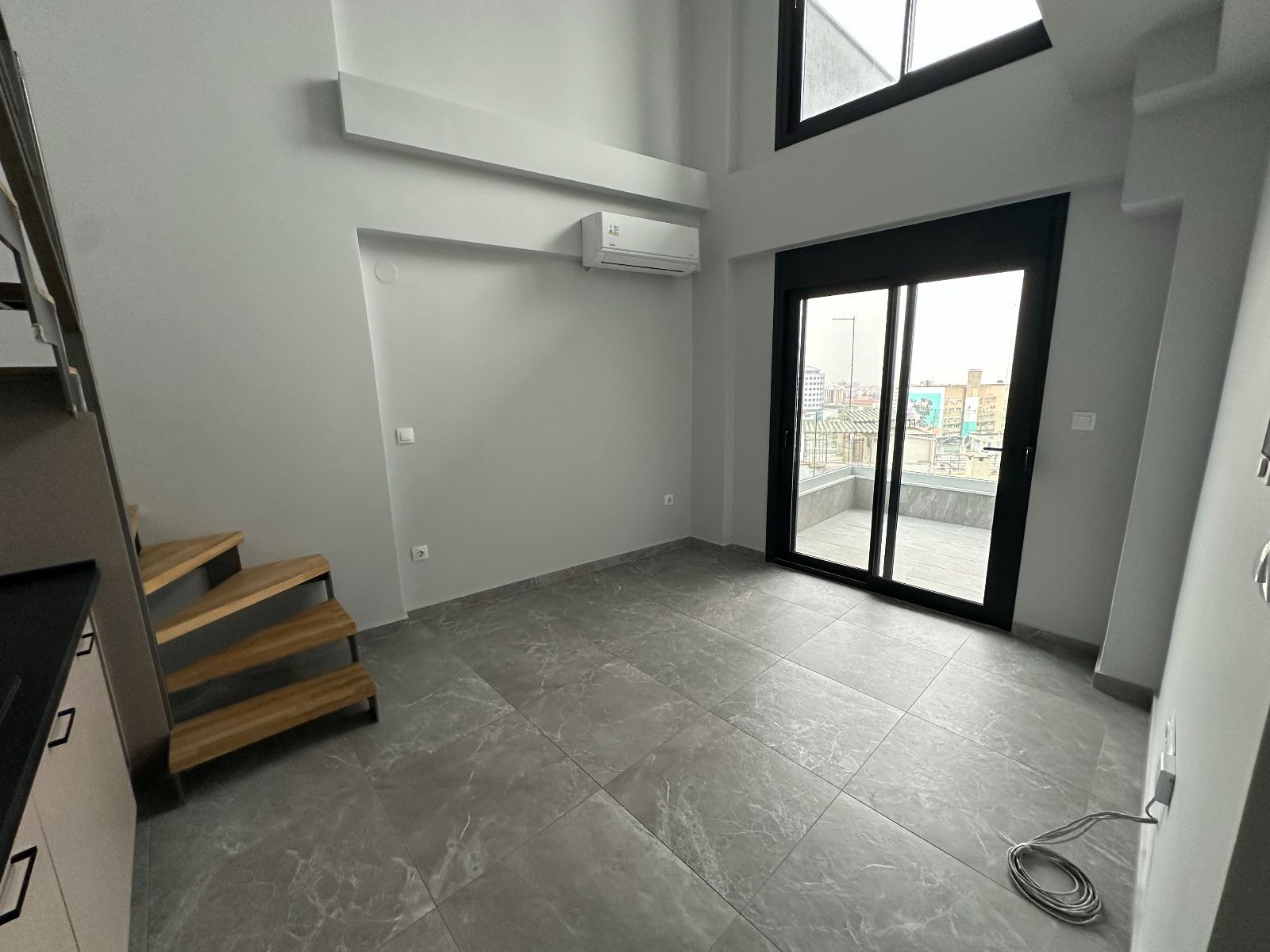 Απαρτίζεται από 2 επίπεδα, διαρθρωμένα στον 3ο όροφο και στον 4ο, 71 συνολικών τετραγωνικών και 50 καθαρών, και αποτελείται από μία ενιαία σαλονοκουζίνα με μπαλκονάκι, το WC και το πρώτο δωμάτιο στον 3ο όροφο, και ανεβαίνοντας τις σκάλες, συναντάμε τό μπάνιο, το δεύτερο δωμάτιο και ένα τεράστιο, επιβλητικό μπαλκόνι.