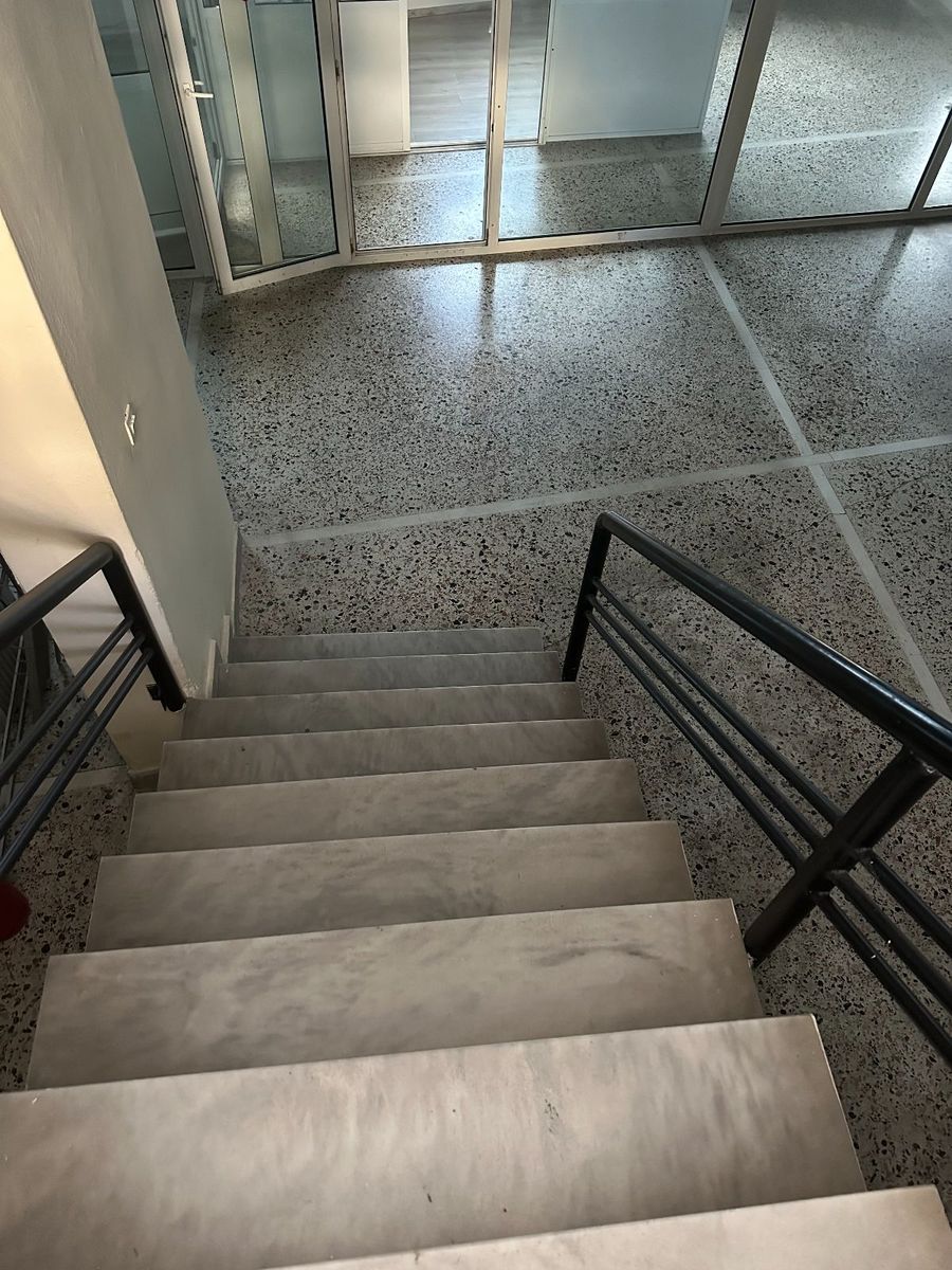 Παραδίδεται στην κατάσταση στην οποία απεικονίζεται, με 2 κλιματιστικά (το ένα επαγγελματικό) και απαρτίζεται επίσης από ένα WC και ένα κουζινάκι. Τα πατώματα είναι από μωσαϊκό και laminate. Το ύψος του είναι 3,20 μέτρα και διαθέτει τριφασικό ρεύμα. Το πλεονέκτημά του είναι ότι υπάρχει στην οπίσθια μεριά τού ακινήτου, ράμπα εκφόρτωσης για να μπαίνουν τά εμπορεύματα και λόγω τού επικλινούς εδάφους θα μπορούσε να θεωρηθεί ισόγειο.