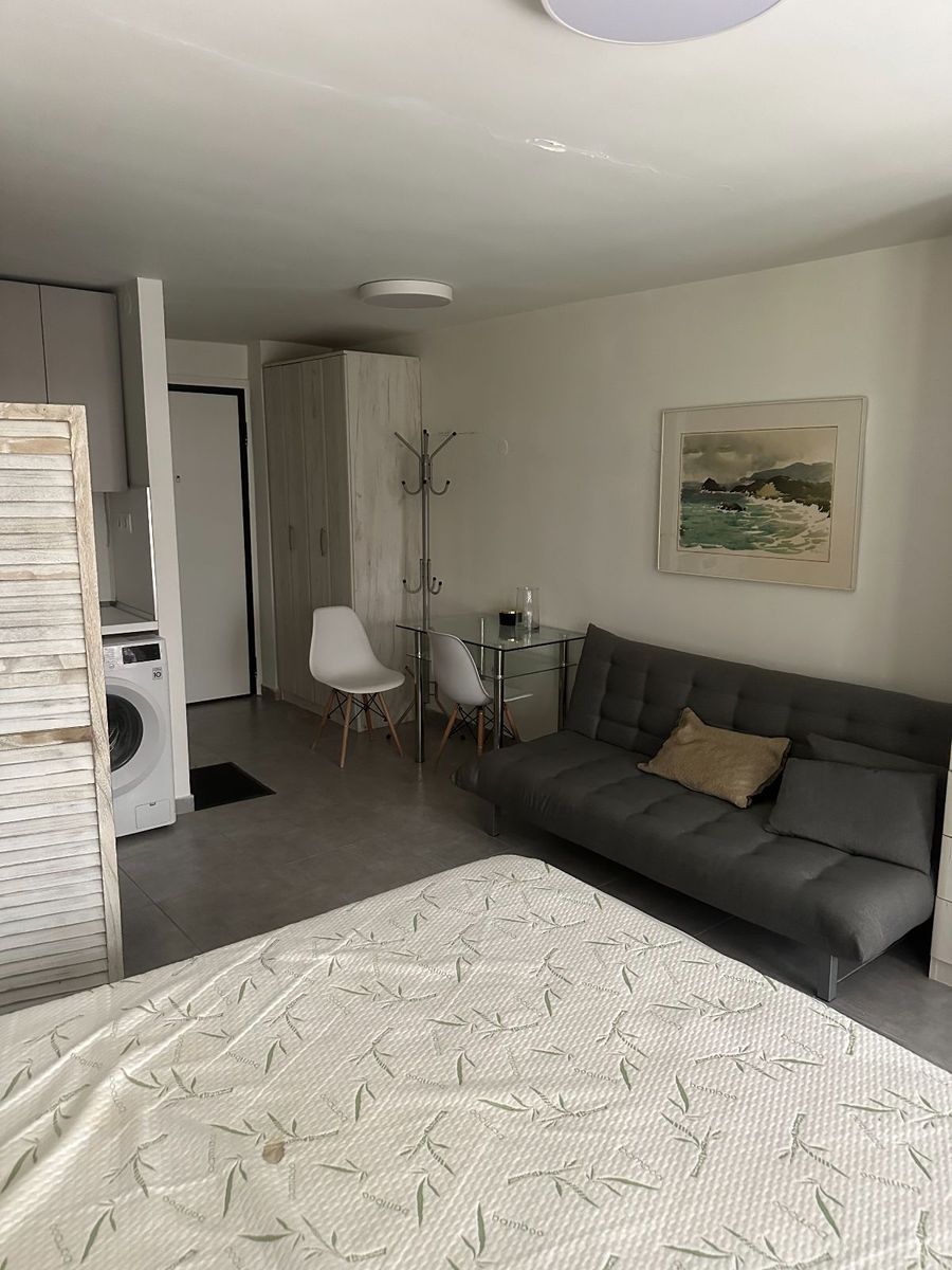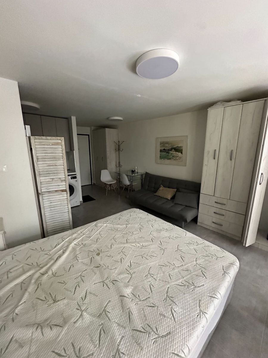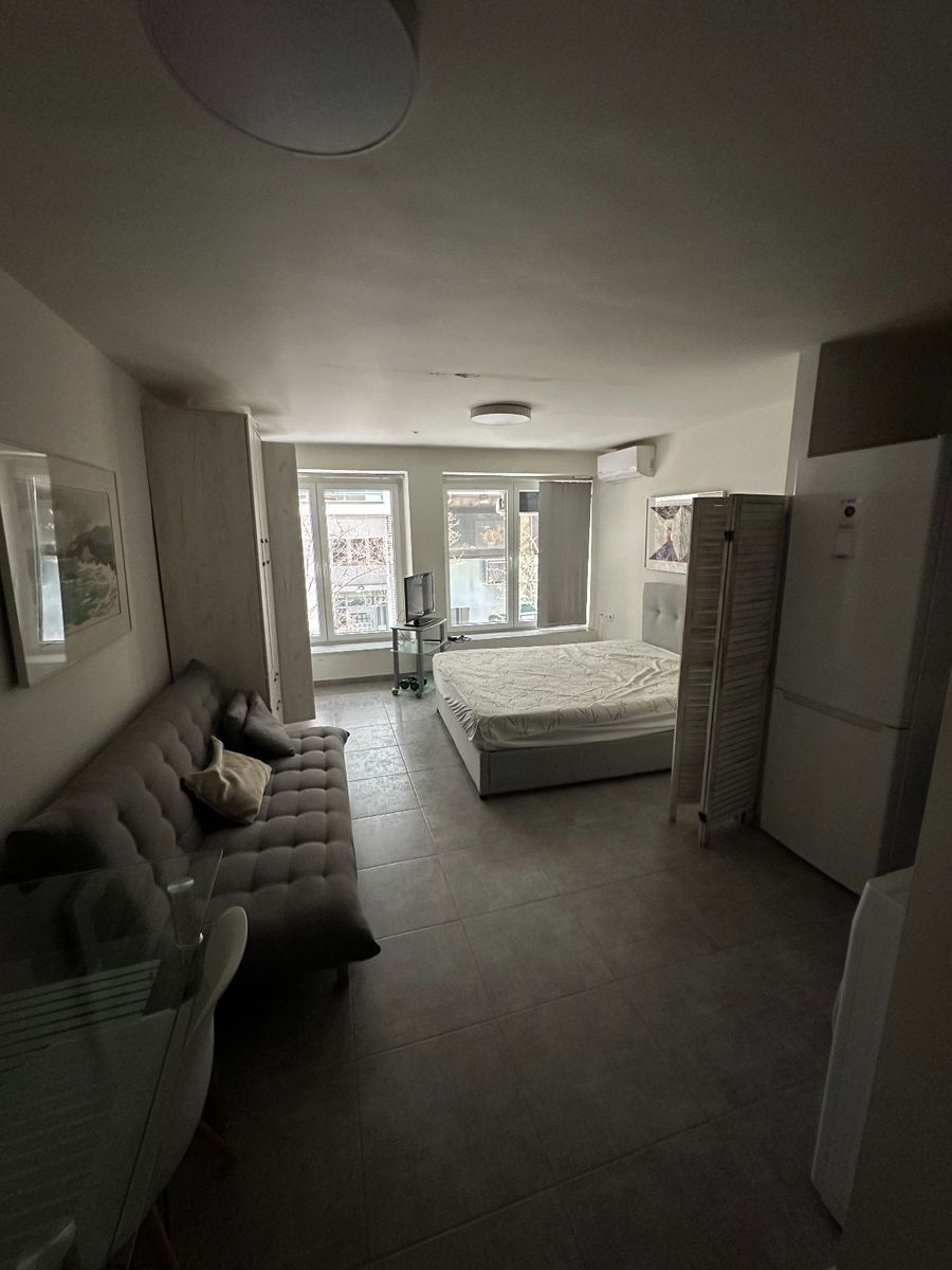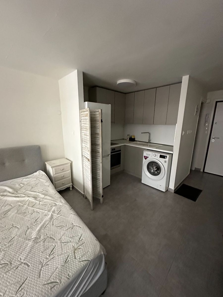 ΧΡΥΣΟΣΤΟΜΟΥ ΣΜΥΡΝΗΣ ενοικιάζεται φωτεινό, πλήρως εξοπλισμένο, επιπλωμένο και ανακαινισμένο στούντιο ημιωρόφου, συνολικού εμβαδού 33 τετραγωνικών μέτρων και αποτελείται από έναν ενιαίο χώρο με κρεβάτι, κουζίνα, καθιστικό και μπάνιο.
