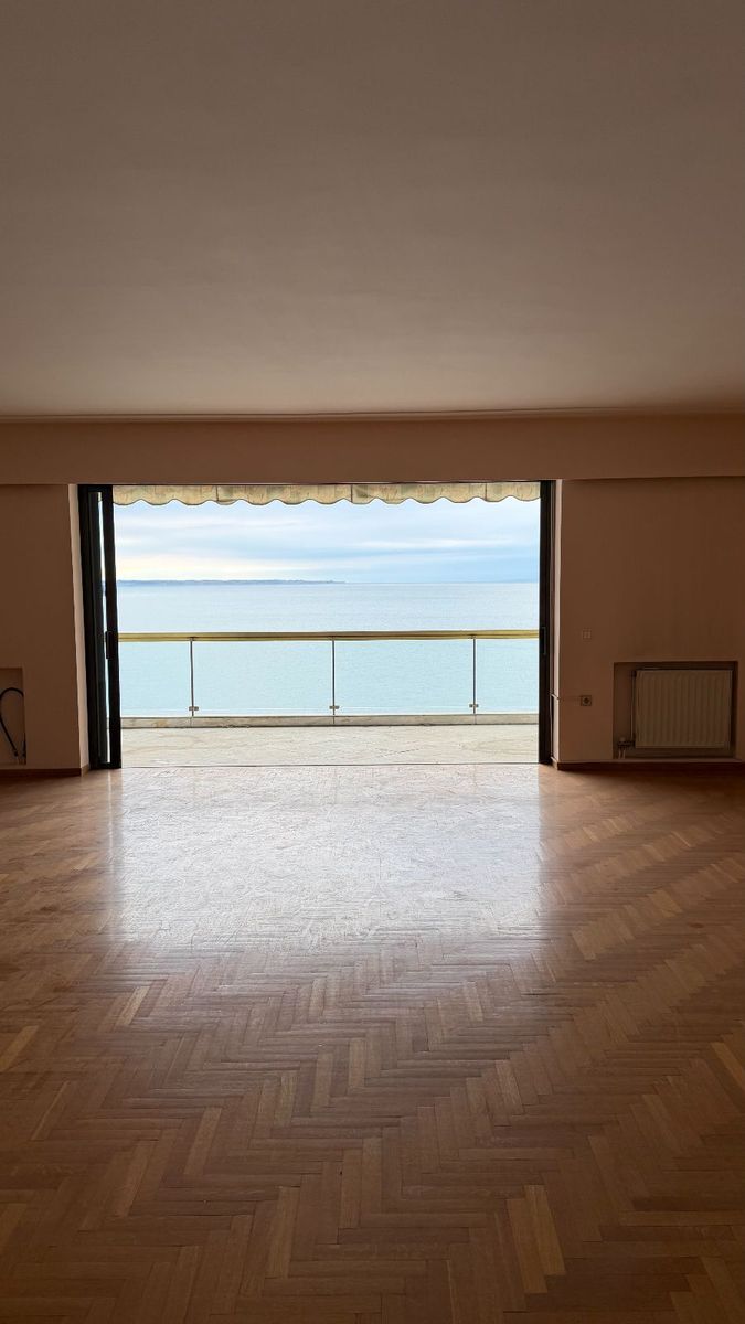 In a unique and imposing building on Nikis Avenue, an apartment with unobstructed sea view is for sale. This is a property located in a high-standard building built in 1998 and with a total area of 170 sq.m. The apartment consists of a large square living room with fireplace, a separate kitchen, 2 bathrooms and 2 large bedrooms.This property is aimed at those who wish to live on the first line but at the same time in a new building.